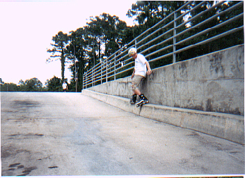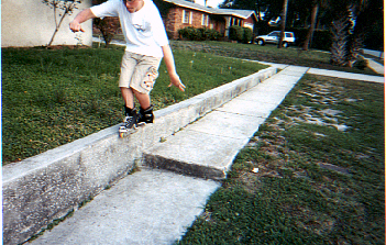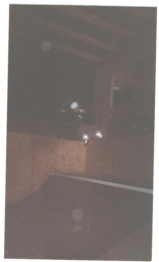 FINALLY!!! a pic of Dan, the photography is a little messed up but those shiny things are dan's skates, acid dropping from a 4ft ledge over a 4 ft gap into a 3 ft mini, insane. |